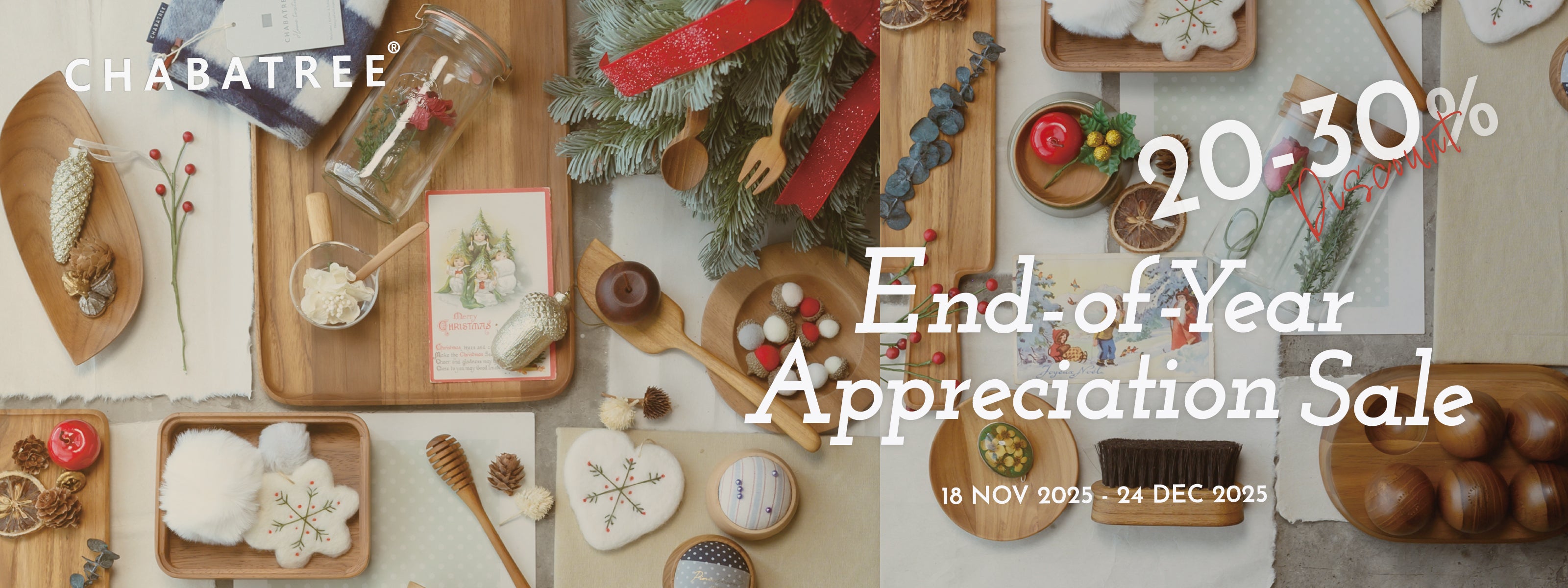 18 November – 24 December 2025 Thank you for your warm support throughout the year Celebrate the season of giving with handcrafted wooden pieces from CHABATREE. ขอบคุณสำหร...